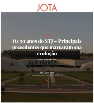 O ministro do Superior Tribunal de Justiça, Luis Felipe Salomão, fez uma análise sobre os 30 anos do STJ no portal JOTA. Acesse a íntegra abaixo: Os 30 anos do STJ – Principais precedentes que marcaram sua evolução - A importância deste grande tribunal, que vem se consolidando como o ‘Tribunal da Cidadania’.