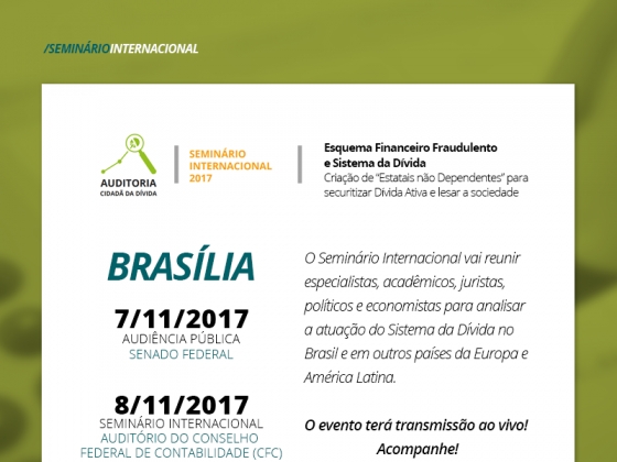 O evento pretende reunir especialistas, acadêmicos, juristas, políticos e economistas para analisar a atuação do Sistema da Dívida no Brasil e em outros países da Europa e América Latina. As atividades terão a presença de especialistas da Grécia, Portugal, Bélgica e diversos países da América Latina.