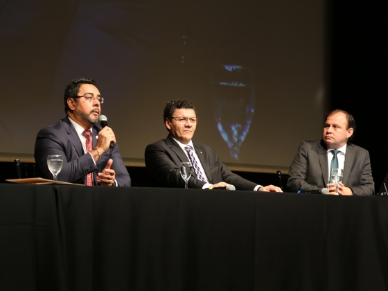 A primeira mesa redonda do Seminário Macrocriminalidade – Desafios da Justiça Federal, que ocorre até a próxima sexta-feira (13), em Belo Horizonte, contou com a participação dos juízes federais Marcelo Bretas e Vallisney de Souza, responsáveis pela condução dos processos da Operação Lava Jato no Rio de Janeiro e no Distrito Federal, respectivamente. O presidente da Ajufe, Roberto Veloso, conduziu o debate.