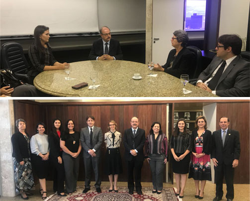 Após a oficialização da nova Comissão, as coordenadoras da REJUFE Mulheres e representantes da AJUFE Mulheres (juízas federais Lêda Pinho, Marília Neves, Polyana Brito) se encontraram com o presidente do TRF5, Desembargador Federal Manoel Erhardt, para reforçarem o apoio do Tribunal na valorização da atuação de mulheres no exercício da magistratura.