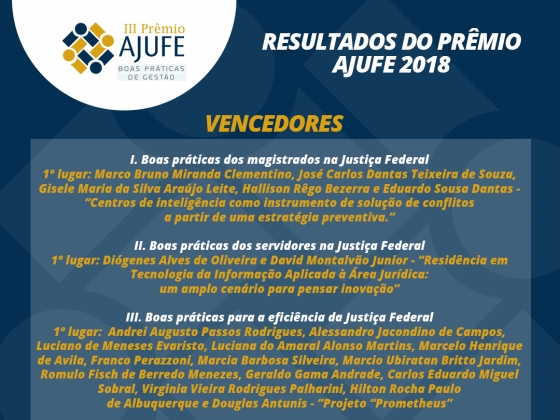 Saiba quem foram os vencedores do III Prêmio Ajufe Boas Práticas de Gestão