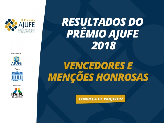 Na última segunda-feira (30/4), a Associação dos Juízes Federais do Brasil divulgou lista com os vencedores e as menções honrosas (segundos lugares) da terceira edição do Prêmio Ajufe Boas Práticas de Gestão. A premiação tem o objetivo de identificar, valorizar e disseminar as experiências exitosas realizadas na Justiça Federal, além de estimular uma gestão participativa e eficiente do Judiciário por meio da difusão de tais medidas.