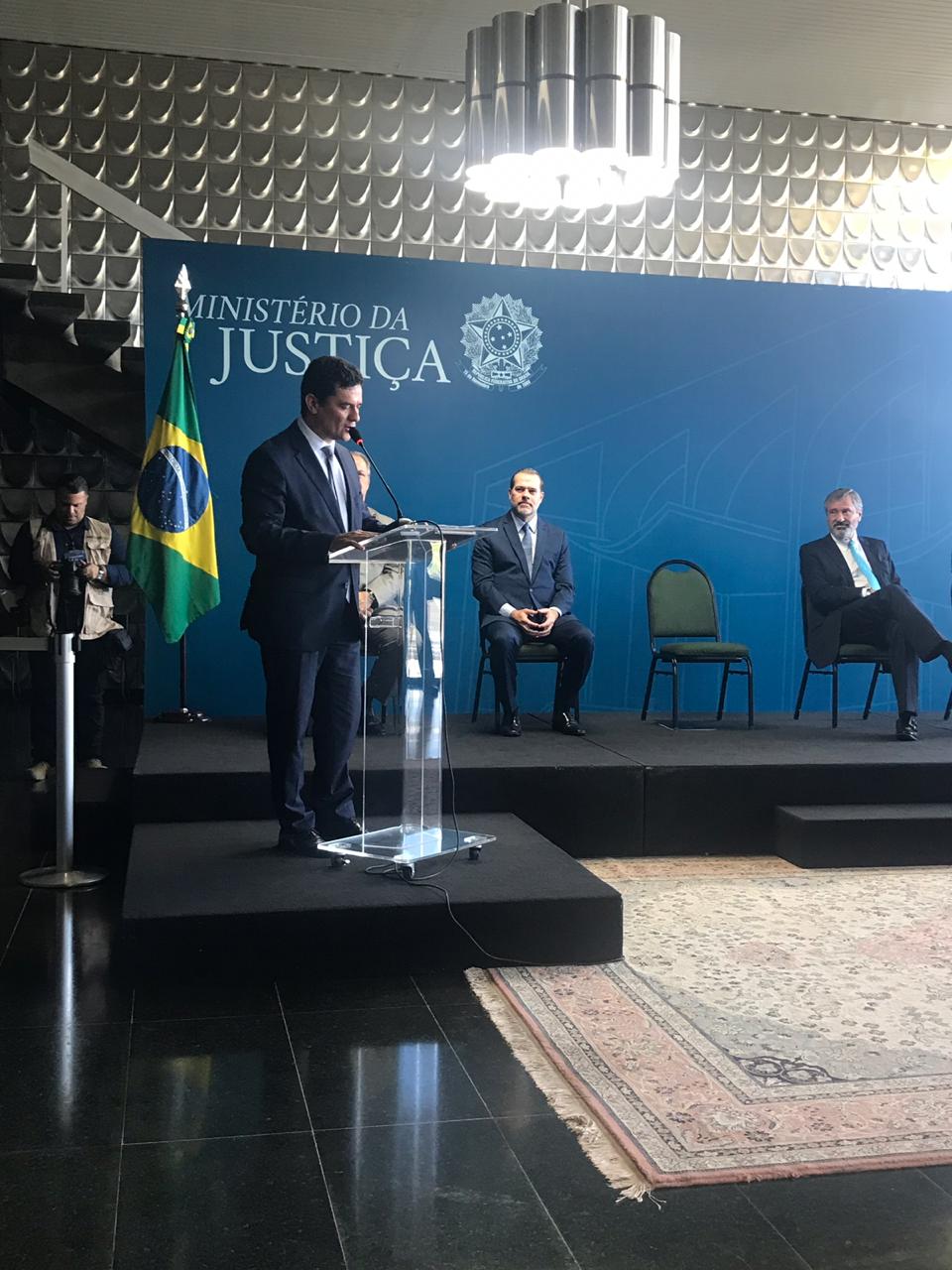 Em discurso, Moro anunciou que pretende colocar em prática medidas de combate a corrupção e violência. Entre as propostas defendidas pelo novo ministro estão a restrição da progressão de regime prisional para integrantes de organizações criminosas e o cumprimento da pena após a condenação em segunda instância.