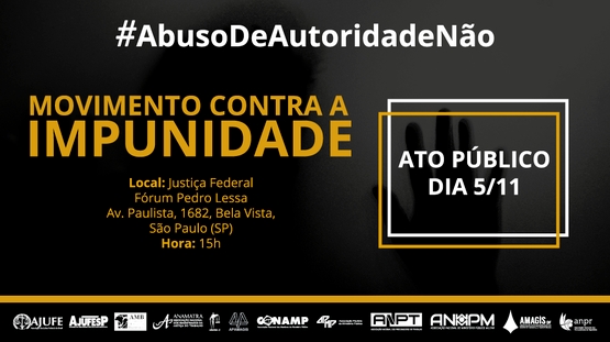 A Associação dos Juízes Federais do Brasil (Ajufe) juntamente com outras entidades representantes da magistratura e do Ministério Público vão realizar, nesta 3ª feira (05/11), um ato público contra a Lei do Abuso de Autoridade. A ação será ocorrerá em frente ao Fórum Pedro Lessa, em São Paulo, às 15h.