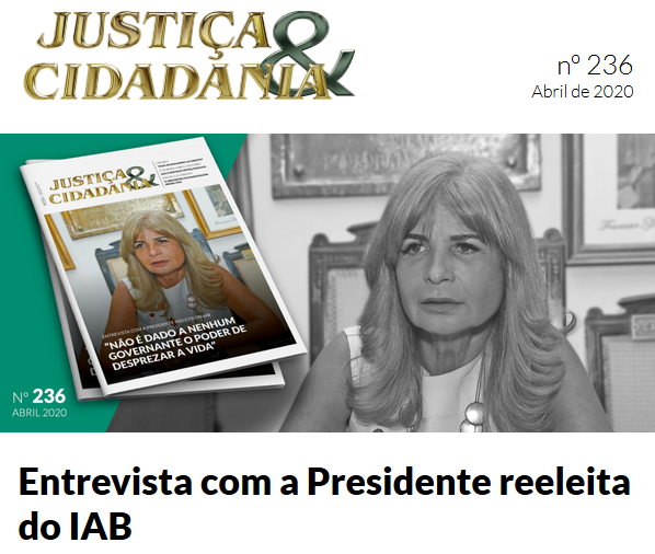 Já está no ar a edição de abril (nº 236) da Revista Justiça & Cidadania, que neste mês traz como destaque a entrevista com a presidente reeleita do Instituto dos Adovogados Brasileiros, Rita Cortez.