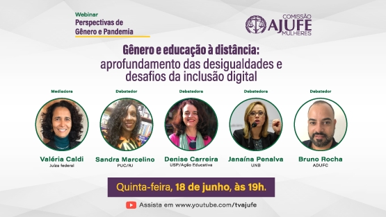 A terceira edição do Webinar Perspectivas de Gênero e Pandemia, promovido pela Comissão Ajufe Mulheres, acontecerá na próxima quinta-feira, dia 18