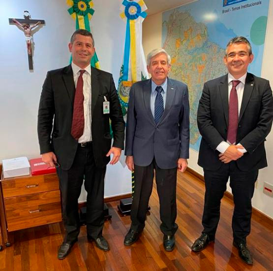 O presidente da Associação dos Juízes Federais do Brasil (Ajufe), Eduardo André, e o diretor Gilson David fizeram uma visita institucional, nesta terça-feira (07/07), ao ministro-chefe do Gabinete de Segurança Institucional, general Augusto Heleno.