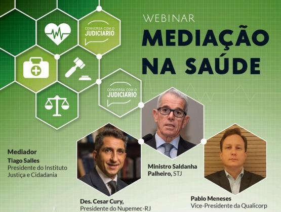 Nesta quinta-feira (09/07), às 16h, a Revista Justiça & Cidadania, com apoio da Qualicorp, promove o Webinar Mediação na Saúde. O evento, que conta com a participação do Ministro do STJ Antonio Saldanha Palheiro, do coordenador do Nupemec, Desembargador Cesar Cury, e do Vice-Presidente da Qualicorp, Pablo Meneses, tem o objetivo de apresentar uma plataforma de mediação online.