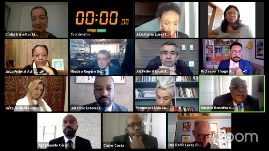 Os juízes Edinaldo César Santos Júnior, do Tribunal de Justiça de Sergipe (TJSE), e Fabio Esteves, do Tribunal de Justiça do Distrito Federal e Territórios (TJDFT) foram os mediadores da discussão que contou com a presença das juízas Adriana Cruz, do Tribunal Regional Federal da 2ª Região (TRF2) e Karen Luise, do Tribunal de Justiça do Rio Grande do Sul (TJRS), além de Lívia Sant’Ana, promotora de Justiça da Bahia, e dos professores Thiago Amparo e Cléber Lázaro Julião Costa.