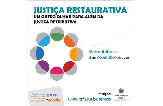 A EMAG, com o apoio da Ajufe, realizará entre os dias 16 de outubro e 03 de novembro o curso "Justiça Restaurativa: um outro olhar para além da Justiça Retributiva".