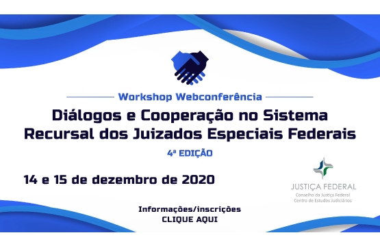 As inscrições para a 4ª edição “Diálogos e Cooperação no Sistema Recursal dos Juizados Especiais Federais” estão abertas, entre o dia 27/10 até 10/12, e devem ser realizadas pelo e-mail: Este endereço de email está sendo protegido de spambots. Você precisa do JavaScript ativado para vê-lo..