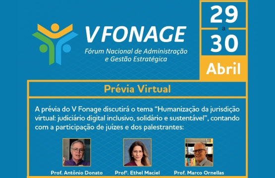 O Fórum Nacional de Administração e Gestão Estratégica (Fonage), conhecido pelas propostas de soluções para gestão mais democrática e eficiente do Poder Judiciário, inova em 2021, com uma programação para esquentar os motores. Nos dias 29 e 30 de abril, convidados irão debater sobre a “Humanização da jurisdição virtual: judiciário digital inclusivo, solidário e sustentável”, com transmissão pelo canal da Ajufe no Youtube (/tvajufe).