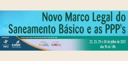 A Escola da Magistratura Regional Federal 2ª Região (EMARF) em parceria com o Tribunal Regional Federal da 2ª Região (TRF2) realizará nos dias 22,23,29 e 30 de julho, das 9h às 18h, o curso “Novo Marco Legal do Saneamento Básico e as PPP´s”. A ação educacional oferta 32 h/a e acontecerá pela Plataforma Zoom.
