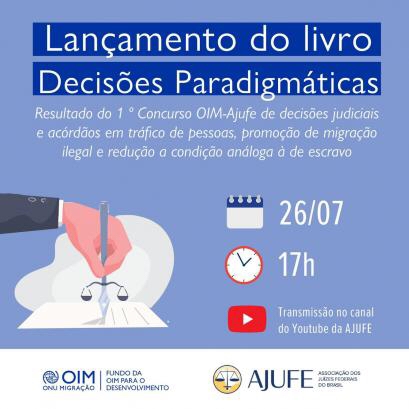 A OIM e a Ajufe - Associação dos Juízes Federais do Brasil publicam livro com as 12 decisões judiciais em tráfico de pessoas, promoção da migração ilegal e redução a condição análoga à de escravo escolhidas no Concurso OIM-AJUFE realizado em abril deste ano.