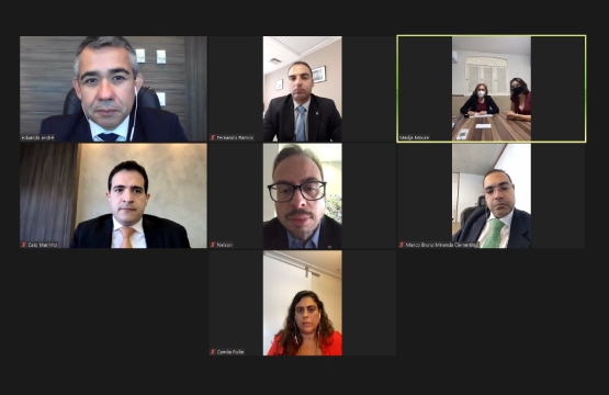 Participaram da reunião o presidente da Ajufe, Eduardo André Brandão, o vice-presidente na 1ª Região, Caio Marinho, a vice-presidente na 5ª Região, Camila Pullin, o primeiro secretário, Nelson Alves, a presidente da Rejufe, Madja de Sousa, e o juiz federal Marco Bruno Miranda.