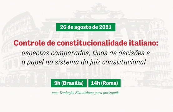 No dia 26 de agosto (quinta-feira), a Ajufe realizará, a partir das 9h (Brasília – 14h, Roma), o curso virtual “Controle de constitucionalidade italiano: aspectos comparados, tipos de decisões e o papel no sistema do juiz constitucional”, com tradução simultânea para português. O evento conta com o apoio do Corso di Alta Formazione in Giustizia Costituzionae e Tutela Giurisdizionale dei Diritti Alessandro Pizzorusso, da Università di Pisa.
