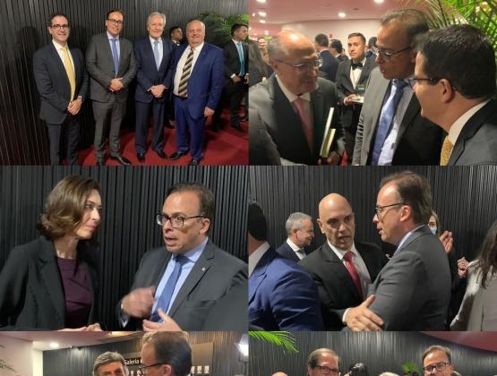 O presidente da Ajufe, Nelson Alves, e o diretor de assuntos legislativos, Caio Marinho, participaram do lançamento da obra digital “Democracia, Humanismo e Jurisdição Constitucional – Estudos em homenagem ao ministro Ricardo Lewandowski”, nesta quarta-feira (30/11), no Tribunal Superior Eleitoral.