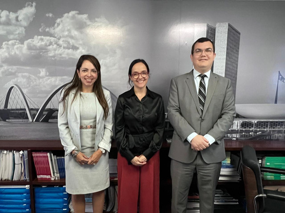 O vice-presidente da Ajufe na 1ª Região, Shamyl Cipriano, e a diretora Ana Lya Ferraz, realizaram, nesta quinta-feira (08/12), reunião com a vice-presidente executiva do Grupo FarmaBrasil, Adriana Diaféria, para definirem a programação científica para o 6º Fórum Nacional da Concorrência e da Regulação (Fonacre).