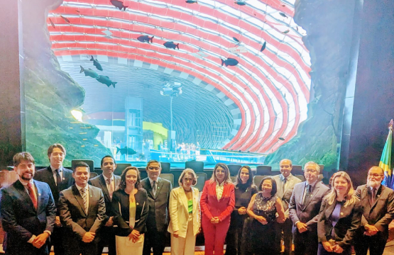 O governador do Mato Grosso do Sul, Eduardo Riedel, participou da inauguração da 2ª Vara-Gabinete proferindo uma palestra com o tema: “Os impactos da Rota Bioceânica no Estado de Mato Grosso do Sul”.