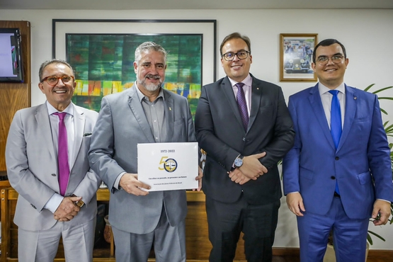 O ministro-chefe da secretaria de comunicação social (SECOM), Paulo Pimenta, recebeu representantes da Diretoria da Ajufe nesta sexta-feira (24/11) em visita institucional. O presidente da Associação, Nelson Alves, o vice-presidente da 1ª Região, Shamyl Cipriano, e o desembargador federal do TRF4, Rogério Favreto, participaram do encontro.