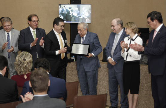 Durante a solenidade, o ministro do STJ Og Fernandes foi homenageado pelos 44 anos de carreira no serviço público e pela contribuição ao Judiciário e à democracia. A Ajufe e o CEJ fizeram a entrega de placas de homenagem ao magistrado.