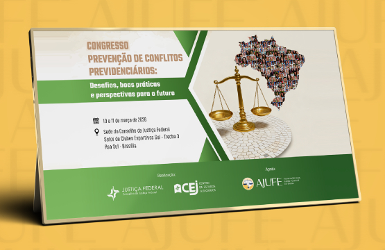 O Conselho da Justiça Federal (CJF), com apoio da Ajufe, promove, nos dias 10 e 11 de março de 2026, no Prédio-Sede do CJF, em Brasília (DF), o Congresso Prevenção de Conflitos Previdenciários: Desafios, boas práticas e perspectivas para o futuro.