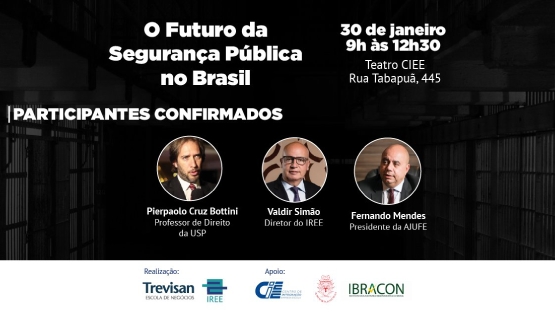 No próximo dia 30 de janeiro, o presidente da Associação dos Juízes Federais do Brasil (Ajufe), Fernando Mendes, participará do seminário “O Futuro da Segurança Pública no Brasil”, promovido pelo Instituto para Reforma das Relações entre Estado e Empresa (IREE) e pela Trevisan Escola de Negócios, em São Paulo, das 9h às 12h30, no Teatro CIEE. Na programação do evento,...
